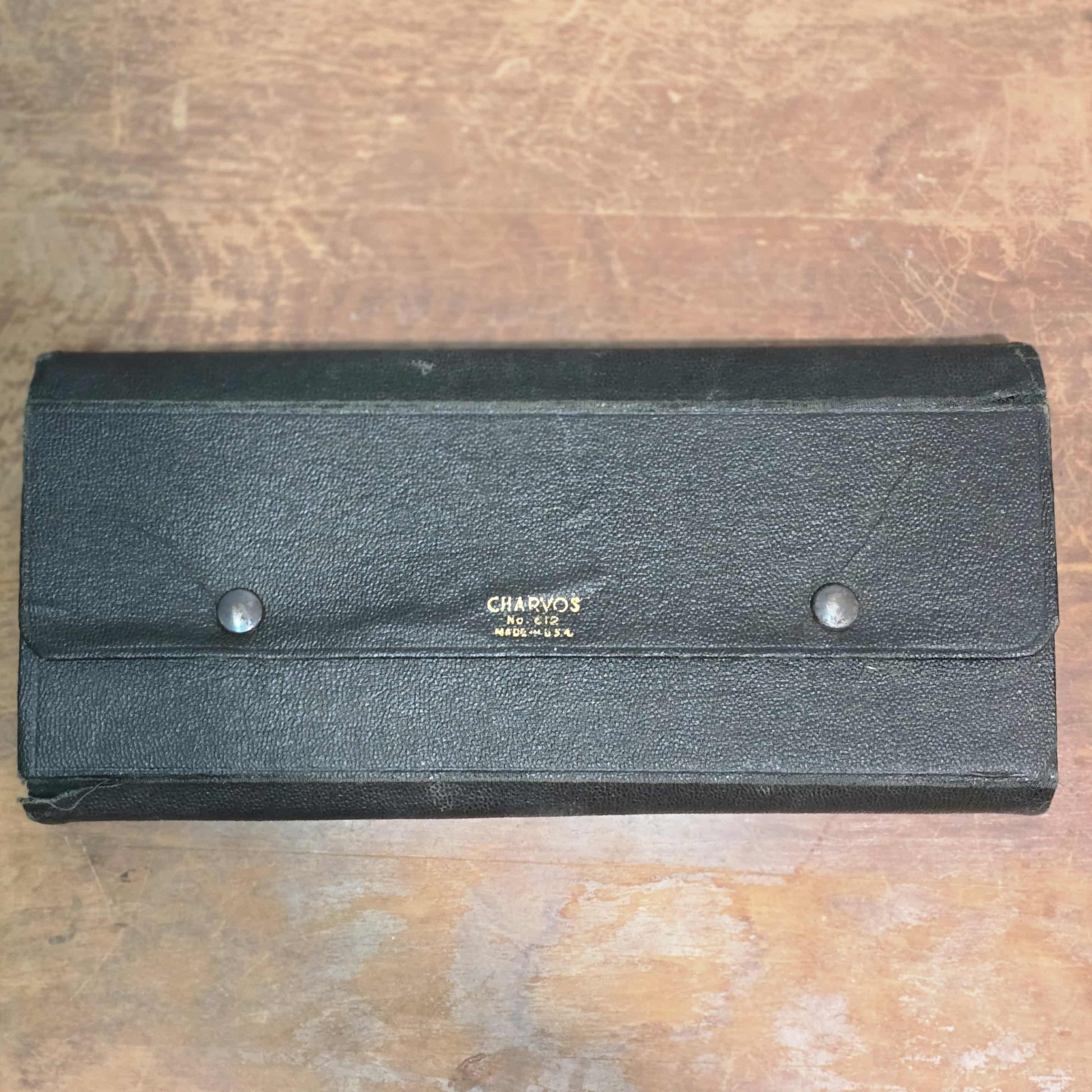 This mid-century drafting set from Charvos reflects the precision and artistry of a time when every line was drawn by hand. Housed in its original black case, it includes multiple compasses, dividers, and interchangeable tips — tools once used by architects, engineers, and designers to map ideas into form.